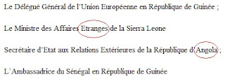 Para além do Ministro dos Negócios Estranhos da Serra Leoa (talvez a título de co-mediador com o anfitrião), é muito estranha a rubrica do Secretário de Estado das Relações Exteriores de Angola no comunicado final das «negociações» de Conacri, pelo qual Alfa Condê tenta tapar os olhos às pessoas para a monumental palhaçada que redundou num inapelável fracasso: a sua montanha pariu um rato, (nem isso aliás, produziu somente stress, servindo apenas para alimentar uma réstea de esperança a DSP, nas suas intrigas internacionais) apesar de, como sempre, nestes cenários de incerteza e dependência, terem agitado a sempre apetecível cenoura do financiamento para a fantochada.